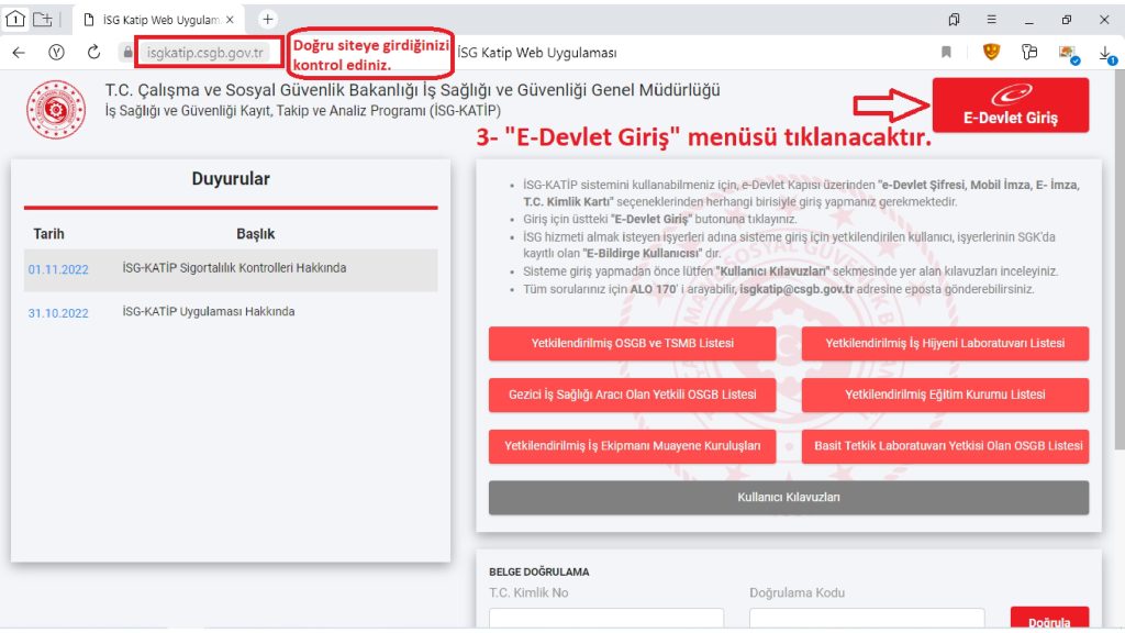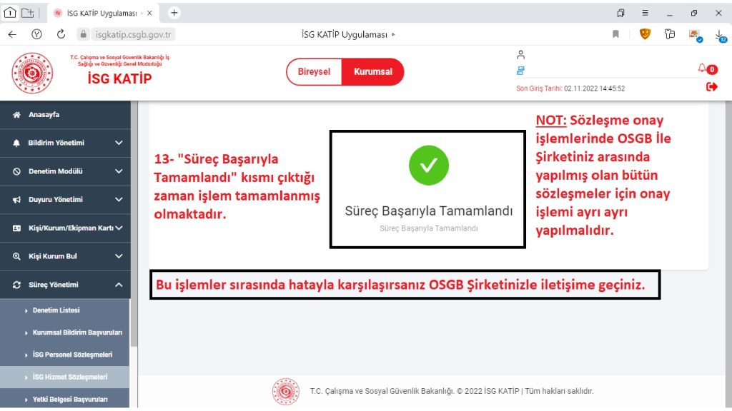 Çalışma ve Sosyal Güvenlik Bakanlığı İş Sağlığı ve Güvenliği Genel MüdürlüğüİSG Katip Sözleşme Onay İşlemleri